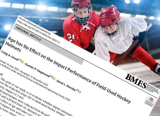We are thrilled to announce that our peer reviewed study Age has No Effect on the Impact Performance of Field‑Used Hockey Helmets has just been published in the Annals of Biomedical Engineering.